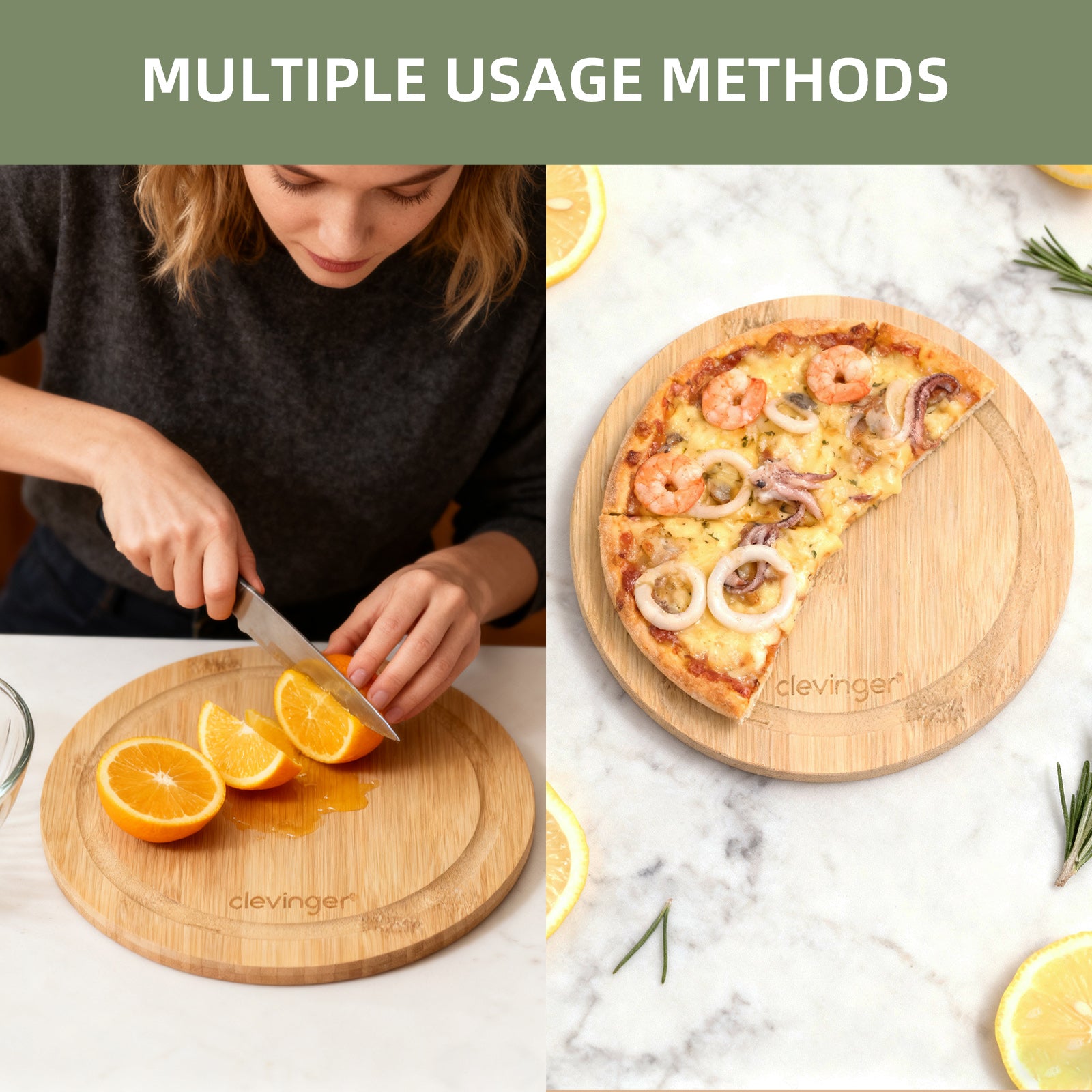The built-in juice groove keeps countertops clean by collecting food and meat juices, while the non-porous bamboo material resists moisture and odor. From slicing fruits and vegetables to serving pizza or grilled meats, this set is designed for every kitchen task.