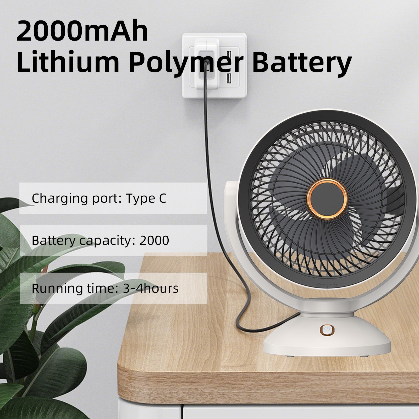 This fan runs smoothly for hours on its 2000 mAh battery—perfect for desk or bedside use.