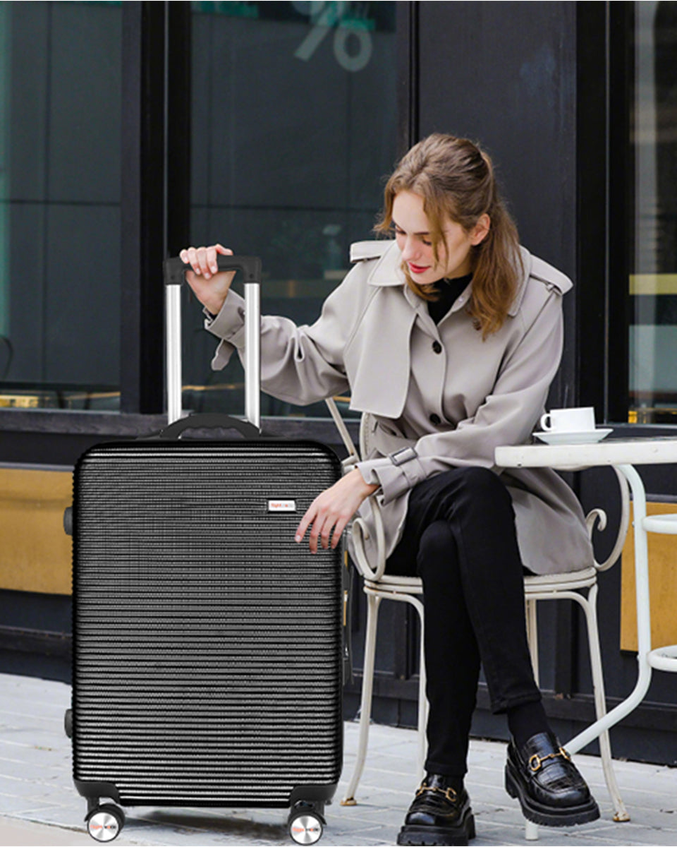 The built-in digital weighing scale, located in the handle and powered by a CR2032 battery, lets you check your bag’s weight instantly to avoid airline fees. A USB charging port is also included, allowing you to charge your devices on-the-go by connecting a power bank inside the suitcase. For security, each suitcase comes with a TSA-approved lock for stress-free international travel.